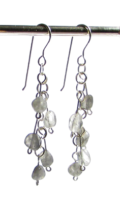 Örhängen av trumlade silverkvarts i gråtoner.