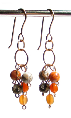 Örhängen i orange-röda och beige-bruna toner