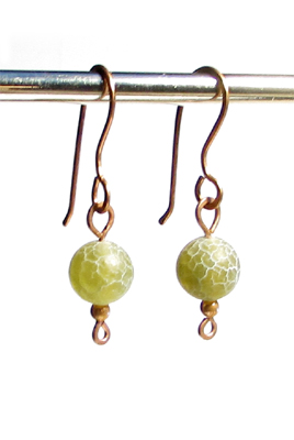 Örhängen av krackelerade agatpärlor i olivgrönt.