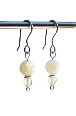 Örhängen av fasetterade agatpärlor i varmgrått
