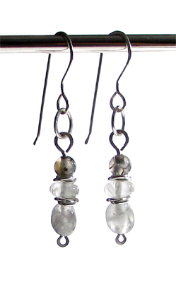 Örhängen av trumlade silverkvarts i gråtoner.
